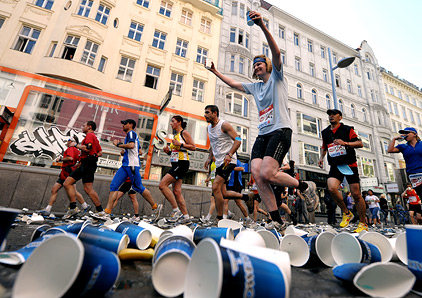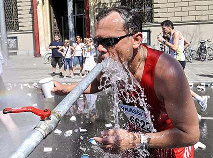 Bei frühsommerlichen Temperaturen war bei den Läufern jede Erfrischung willkommen.